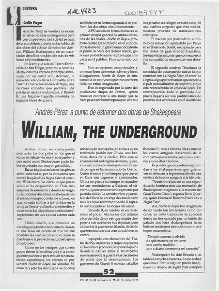 William, the underground [artículo] Cecilia Vargas.