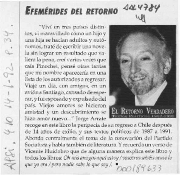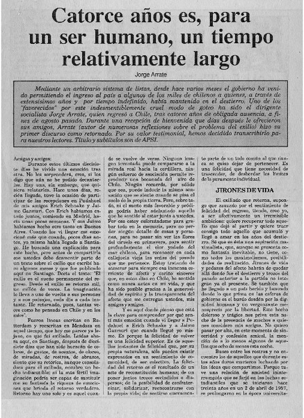Catorce años es, para un ser humano, un tiempo relativamente largo [artículo] Jorge Arrate.
