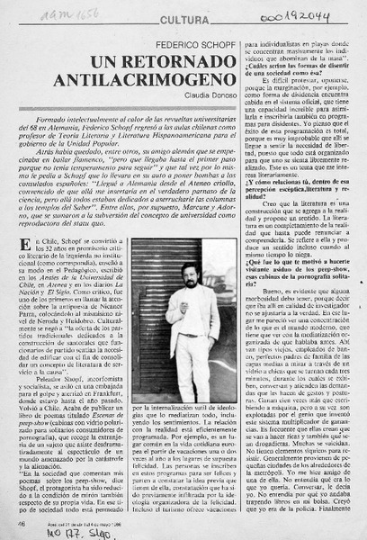 Un retornado antilacrimógeno [artículo] Claudia Donoso.