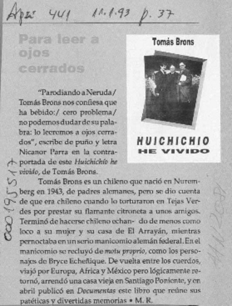 Un cronicón de sí mismo [artículo] Alfonso Calderón.