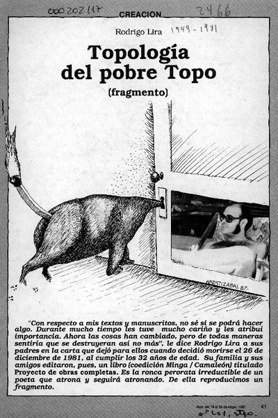 Coleccionista de injurias y dudas [artículo] Alfonso Calderón.