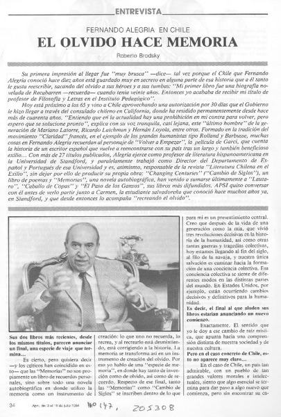 ALEGRIA, FERNANDO - ESPECIE DE MEMORIA
