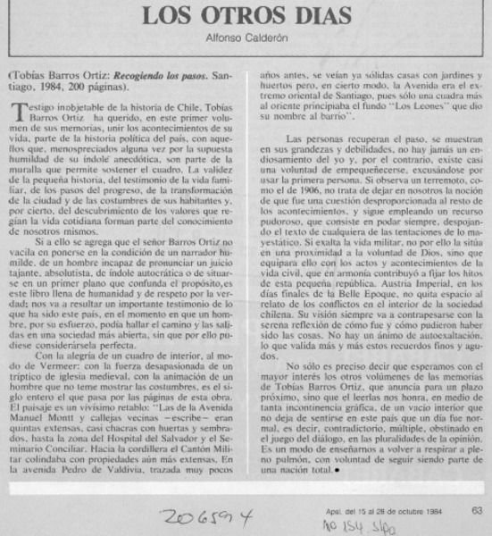 Un modo de recuperar Chile [artículo] Alfonso Calderón.