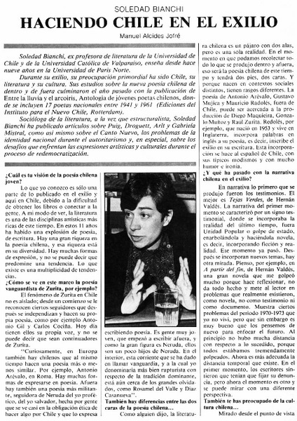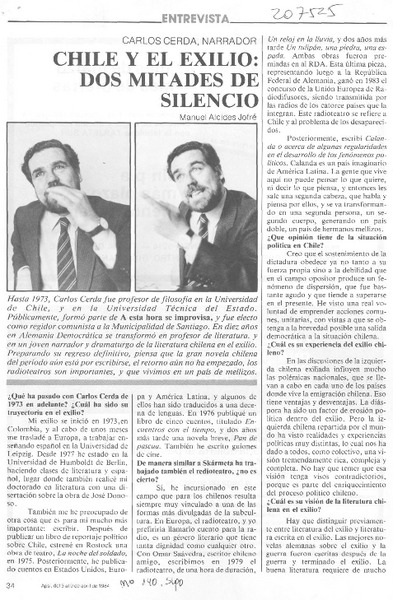 Chile y el exilio; dos mitades de silencio [artículo] Manuel Alcides Jofré.