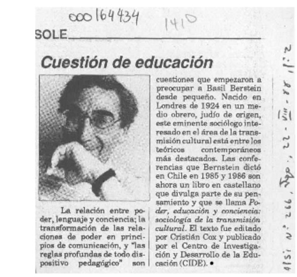 Cuestión de educación [artículo].
