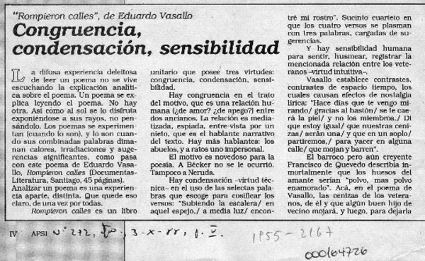 Congruencia, condensación, sensibilidad [artículo] Erick Pohlhammer.
