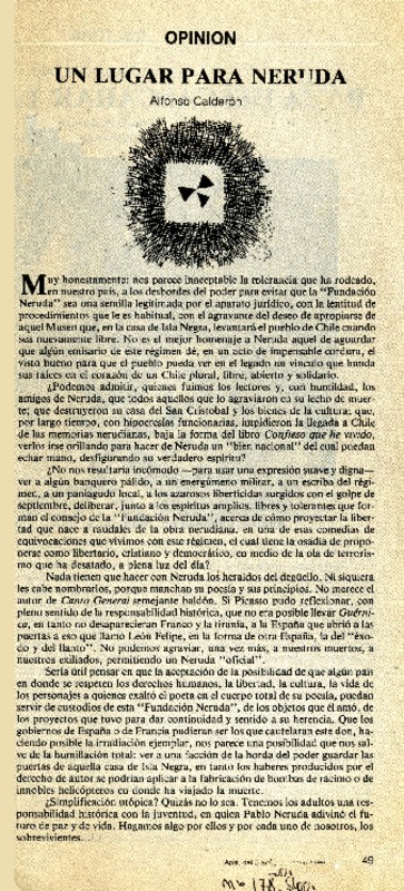 Un lugar para Neruda [artículo] Alfonso Calderón.