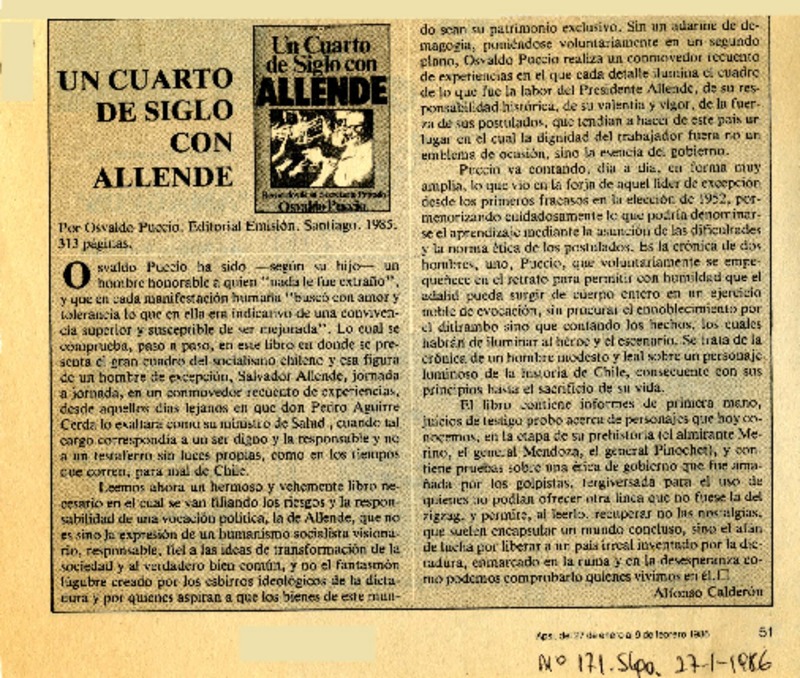 Un cuarto de siglo con Allende [artículo] Alfonso Calderón.