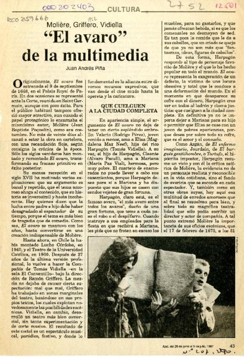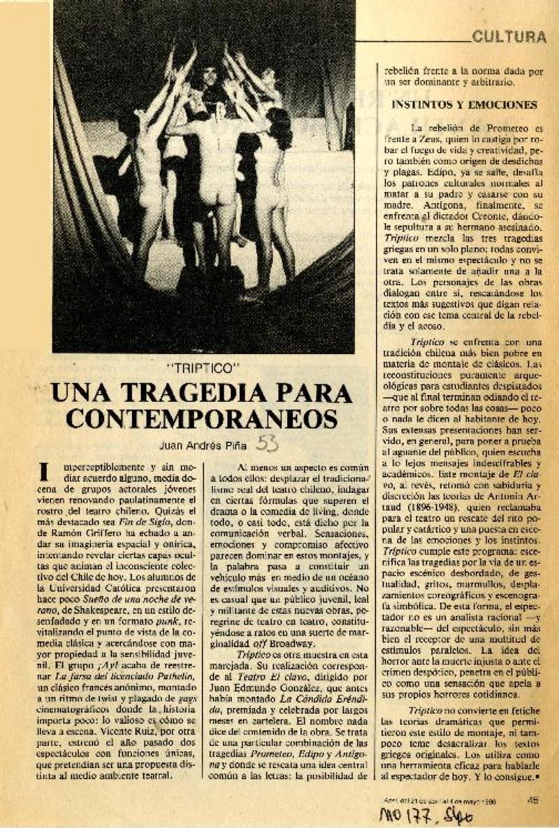 Una tragedia para contemporáneos [artículo] Juan Andrés Piña.