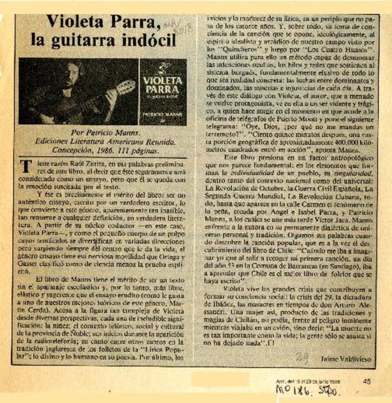 Violeta Parra, la guitarra indócil [artículo] Jaime Valdivieso.