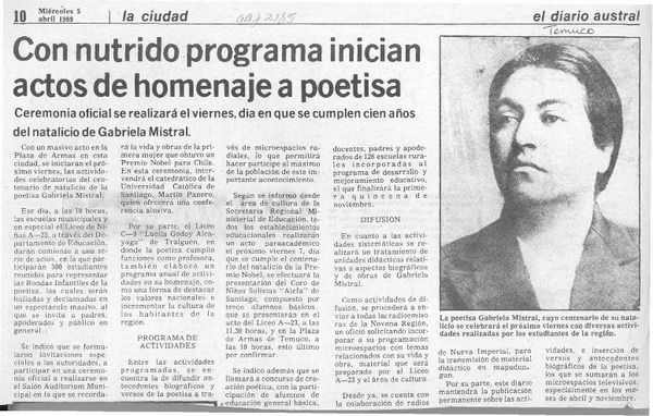 Asech se adhiere al homenaje a Gabriela [artículo].