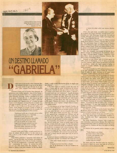 Un destino llamado "Gabriela" [artículo] Rafaela Cruz.