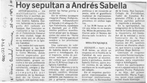Adiós al hermano, adiós a Andrés Sabella [artículo] Marco Antonio Pinto.