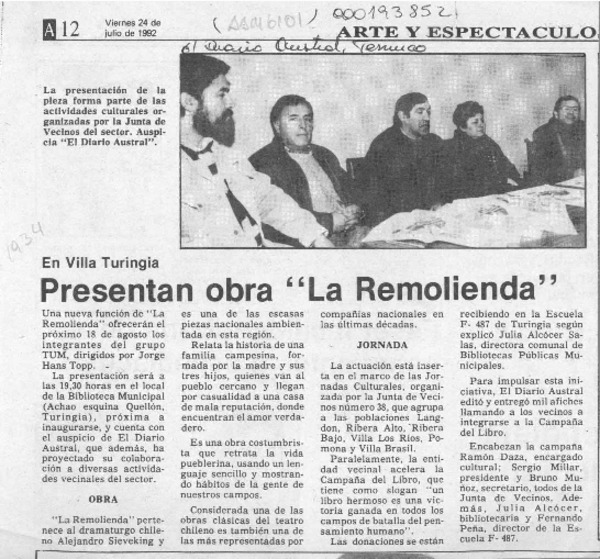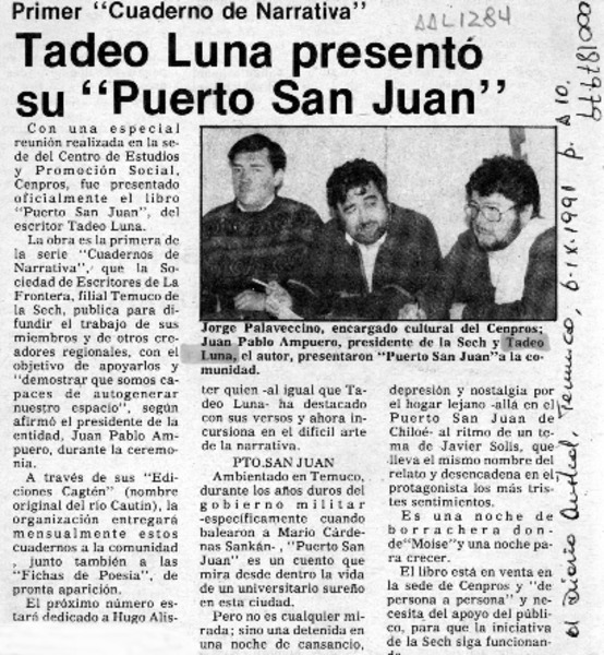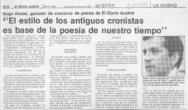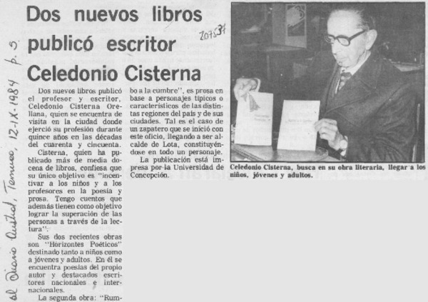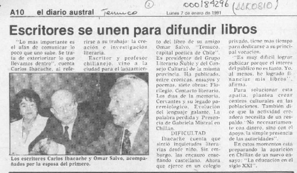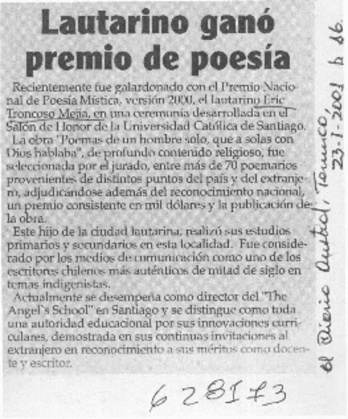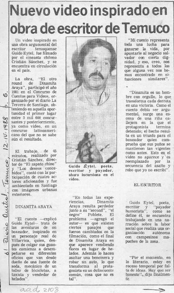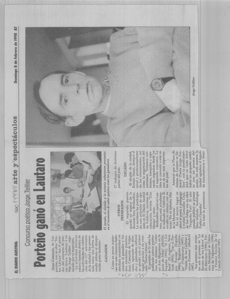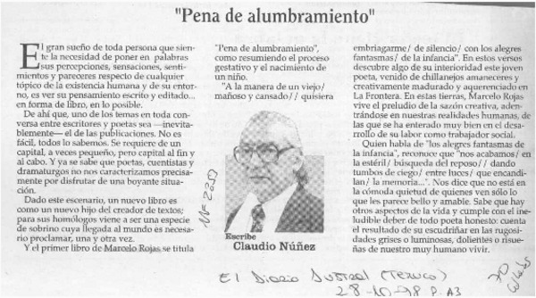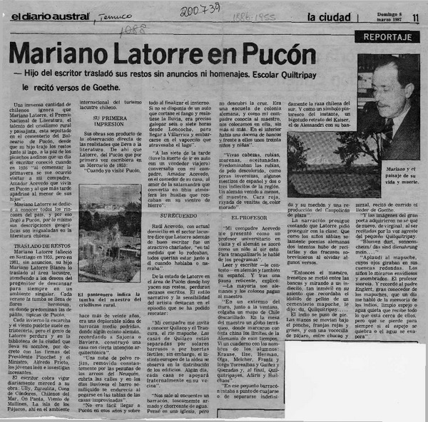 Un joven escritor local que promete [artículo] Yolanda Latorre Osses.