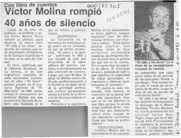 Víctor Molina rompe el silencio [artículo] Ana María Morales.