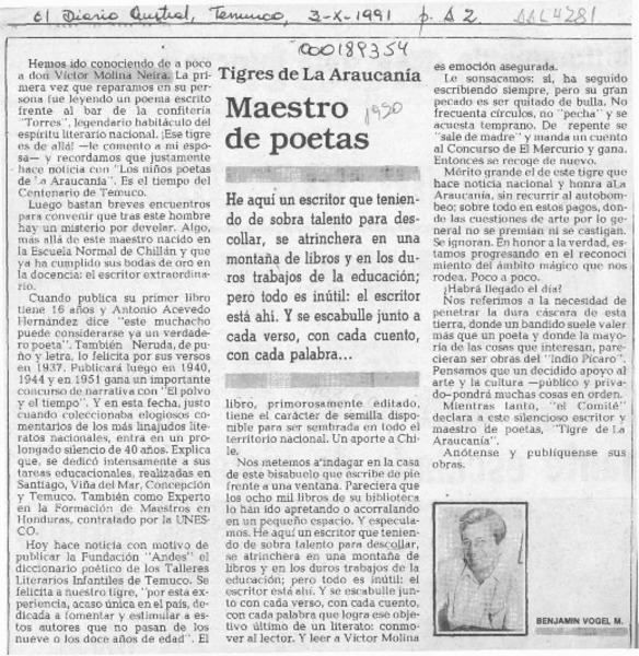 Alumnos poetas temuquenses en las páginas de un libro [artículo] Guillermo Chávez.