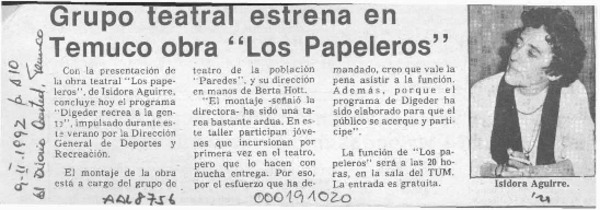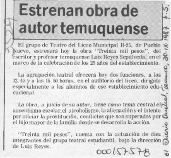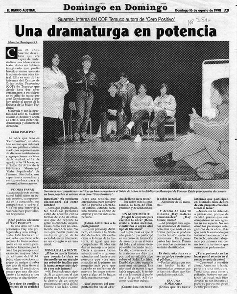 Una dramaturga en potencia [artículo] Eduardo Henríquez O.