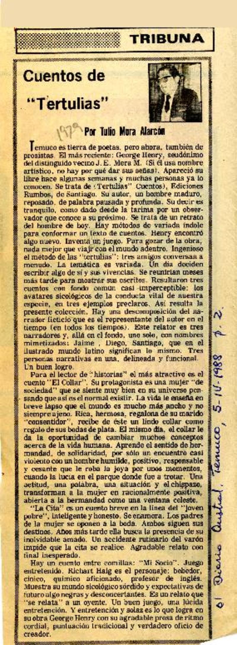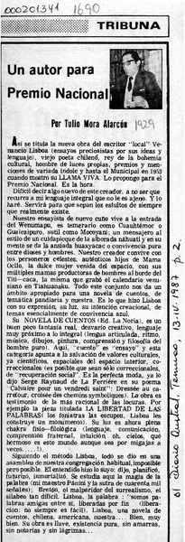 Un autor para Premio Nacional [artículo]Tulio Mora Alarcón.