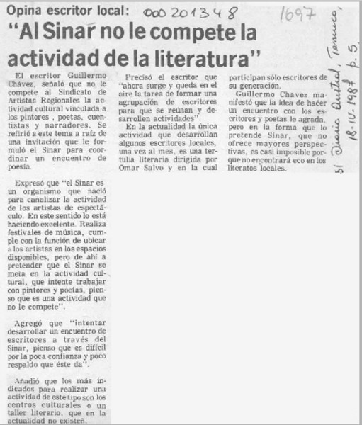 Testimonio para meditar [artículo] Guillermo Chávez.