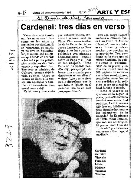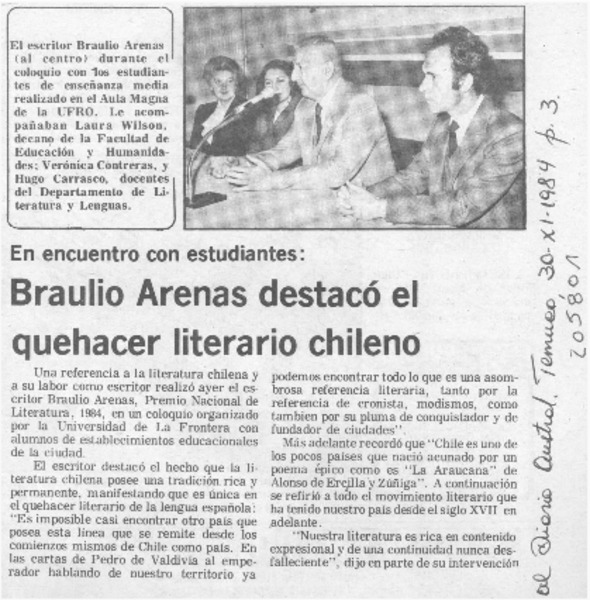 Braulio Arenas, Premio Nacional de Literatura viene a Temuco [artículo].