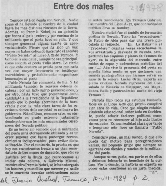 Tiempo para recordar a Neruda [artículo].