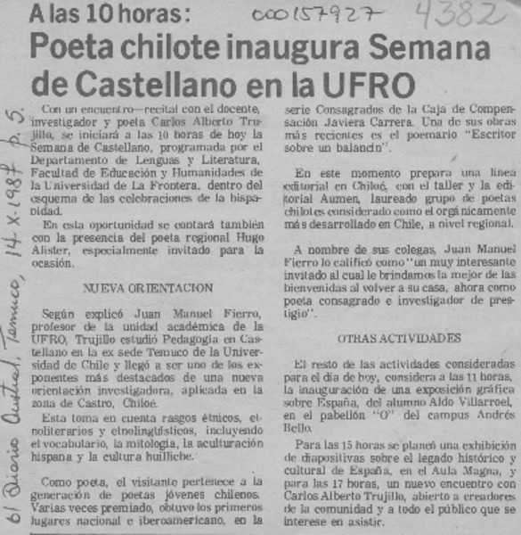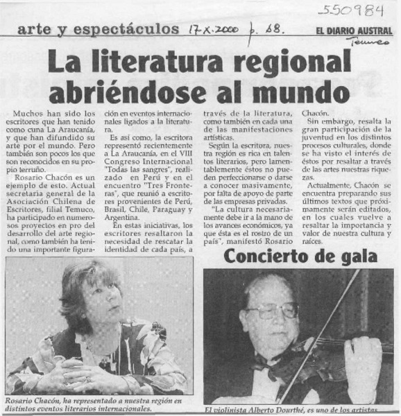 Ufro inicia apertura hacia lírica regional [artículo].