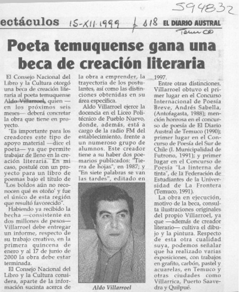 Aldo Villarroel Sáez, poeta, "Escribo para que todos me entiendan" [artículo].