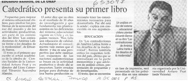 Aparece libro sobre ministro H. Büchi [artículo].