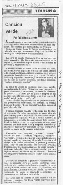 Canción verde [artículo] Tulio Mora Alarcón.