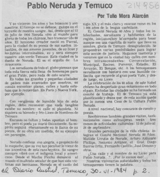 Versos que todo Temuco sabe [artículo] Néstor Fuentealba.