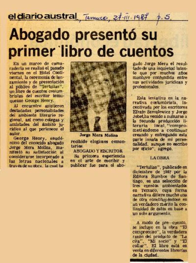 Abogado publicó libro de cuentos [artículo].
