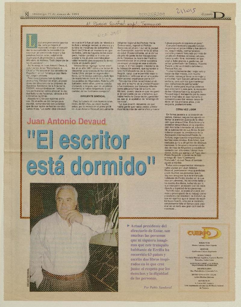 Un escritor que despertó tarde [artículo] Eduardo Henríquez Ormeño.