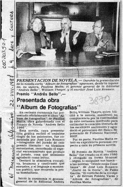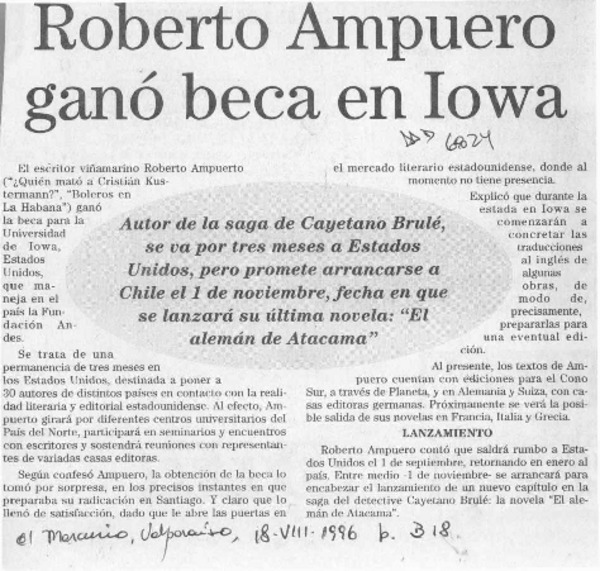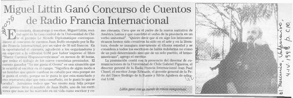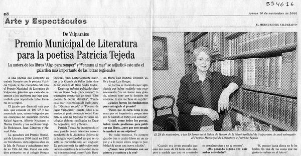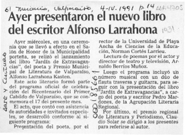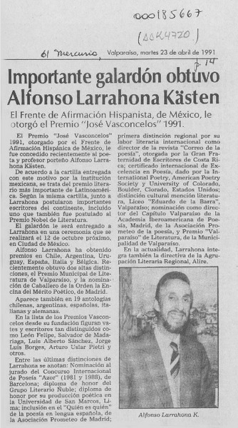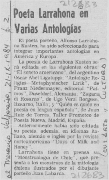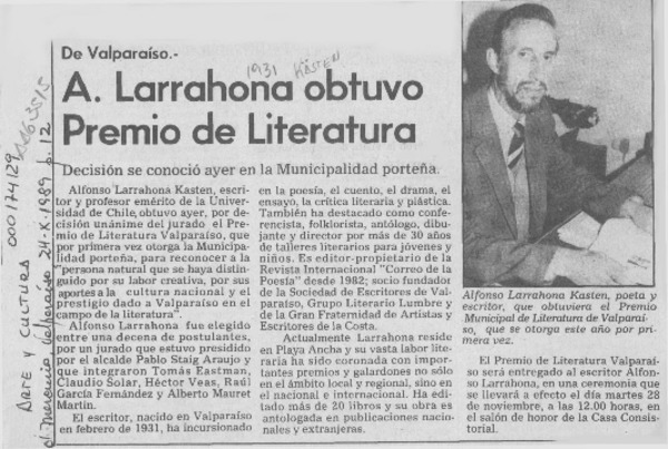 A. Larrahona obtuvo Premio de Literatura [artículo].
