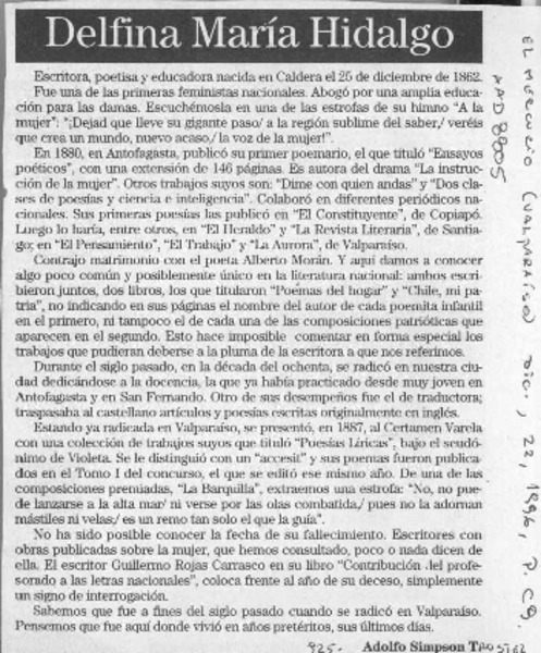 Valparaíso en la crónica de Adolfo Simpson [artículo] Hugo Rolando Cortés.