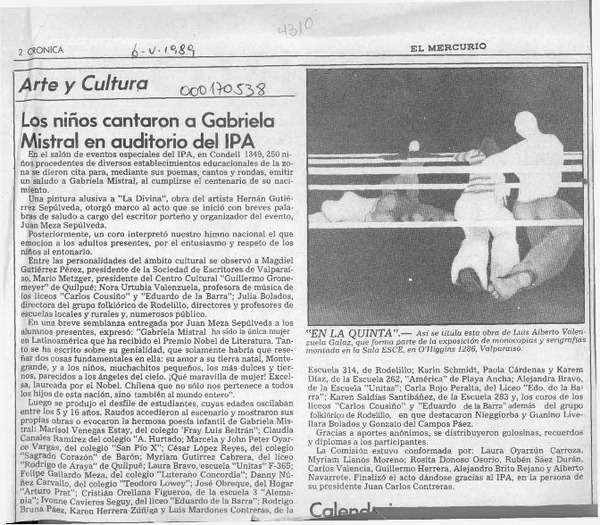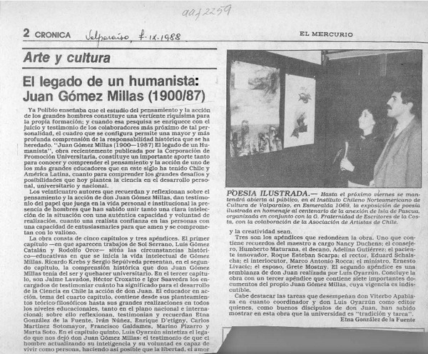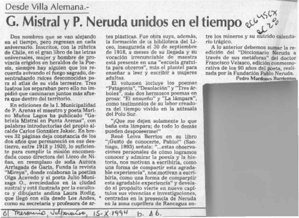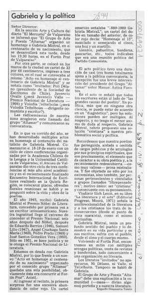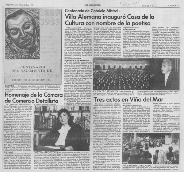 Villa Alemana inauguró Casa de la Cultura con nombre de la poetisa [artículo].