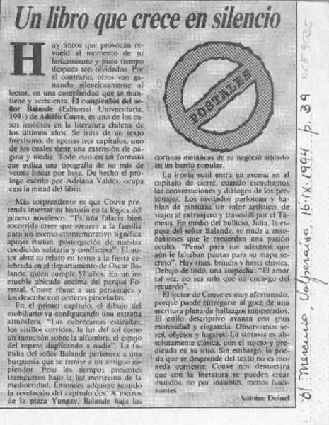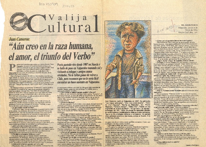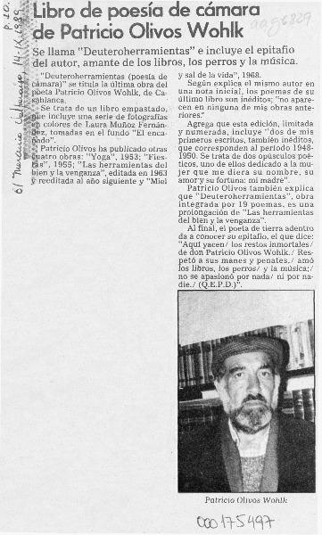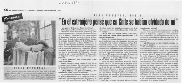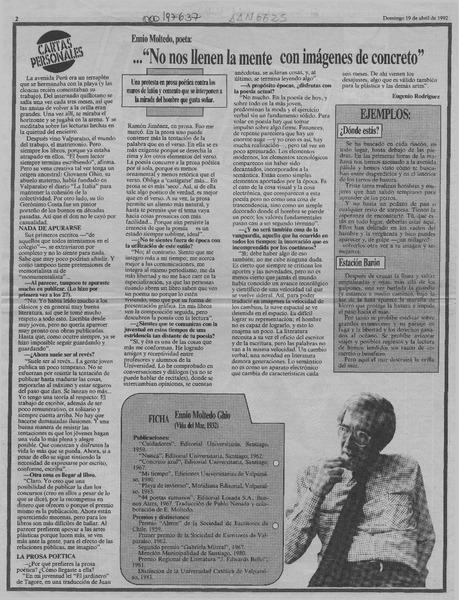 Alfonso Calderón, "Debo tener unos 200 lectores" [artículo].
