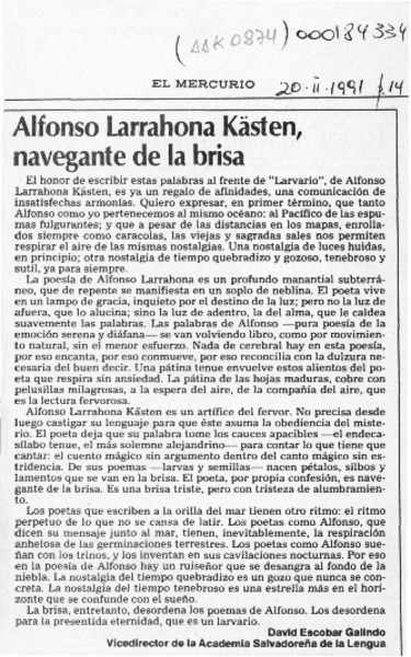 Alfonso Larrahona Kästen, navegante de la brisa [artículo] David Escobar Galindo.