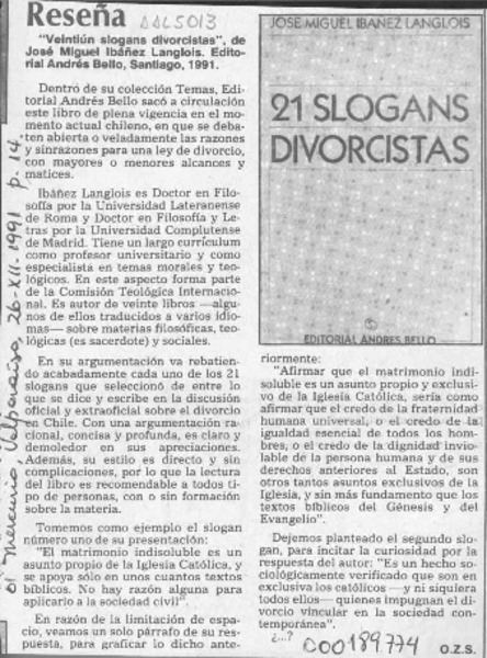 Ibañez Langlois, José Miguel - 21 slogans divorcistas