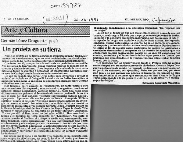Un profeta en su tierra [artículo] Edmundo Sepúlveda Marambio.