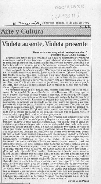 Violeta ausente, Violeta presente [artículo] Carlos León Pezoa.