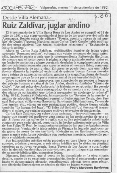 Al "Hondero entusiasta", último poemario de Pedro Mardones B. [artículo].