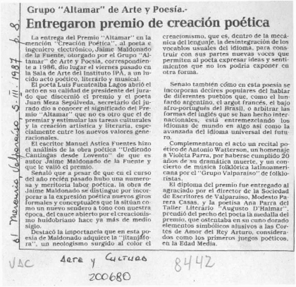 Alcayaga, entre la nube y la estatua [artículo] Antonio Pedrals.