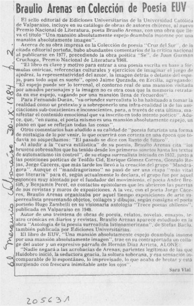 Veinte años de poesía de la creadora porteña Sara Herrera [artículo] Pedro Mardones Barrientos.