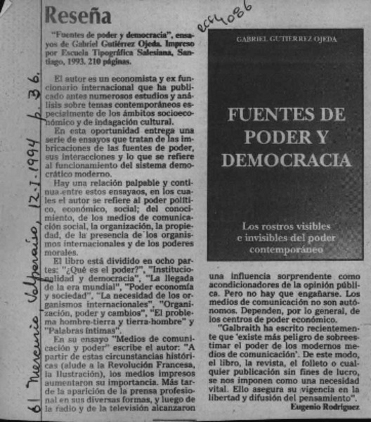 Víctima del ansia y el apuro? [artículo] Eugenio Rodríguez.