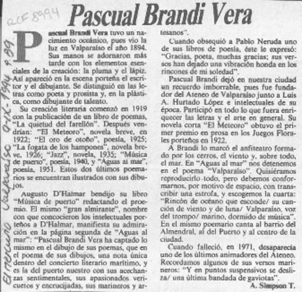 Alfredo Guillermo Bravo [artículo] Adolfo Simpson T.