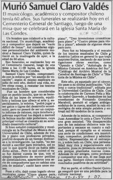 100 años de Angel Cruchaga S. M. [artículo] Pedro Mardones Barrientos.