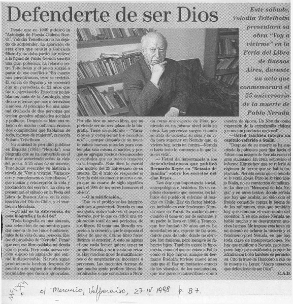 Volodia Teitelboim hablará sobre Neruda y el Canto General [artículo].