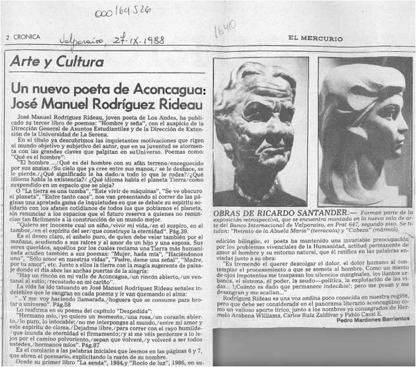 Un nuevo poeta de Aconcagua, José Manuel Rodríguez Rideau [artículo] Pedro Mardones Barrientos.