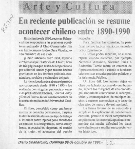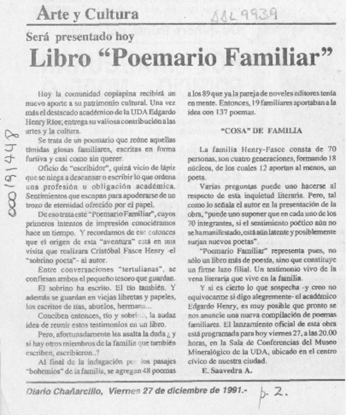 Aniversario de Chañaral y lanzamiento de libros [artículo] Oriel Alvarez Gómez.