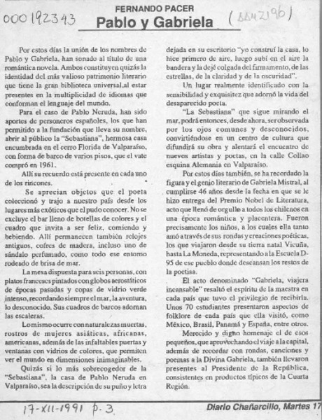 Mistral, Gabriela - Arriagada, Náyade